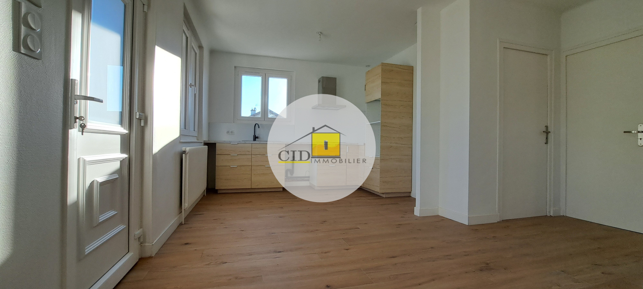 À l’étage, elle se compose d’une grande pièce de vie lumineuse de 33,63 m² faisant office de salon / séjour, ouverte sur une cuisine neuve entièrement meublée et équipée (hotte, plaque à induction, branchement pour lave-vaisselle). L’espace nuit comprend trois chambres, une salle d’eau ainsi qu’un WC séparé.